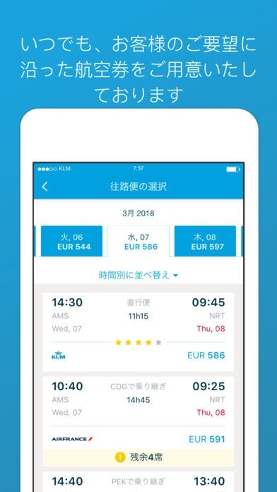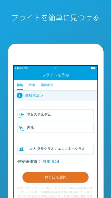 KLMオランダ航空のスクリーンショット