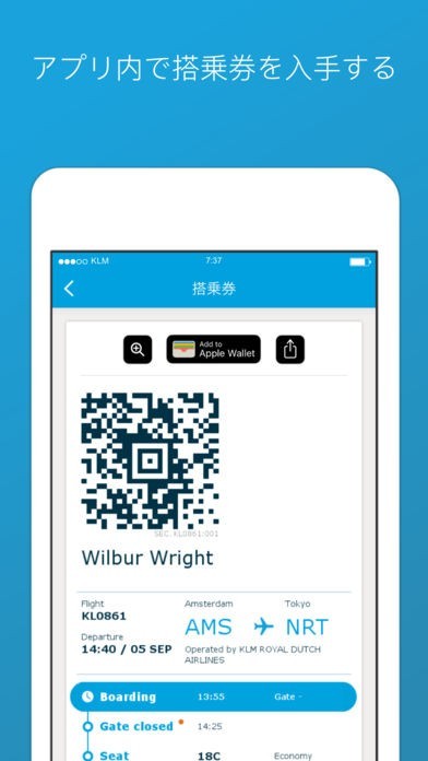 オランダ航空の航空券がアプリで簡単に予約でき、飛行機の座席の指定も可能です。スキャン可能な搭乗券が発行されるため髪のチケットがいらずスムーズの搭乗することができます。