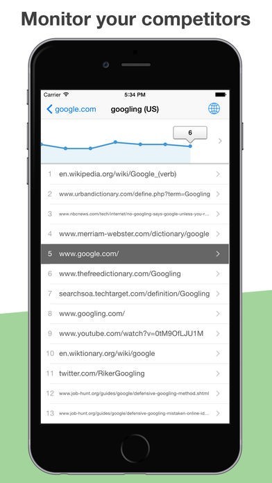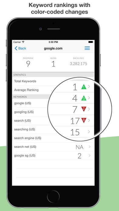 SEOのランキングを分析するとき、過去からの推移を知ることが大切になります。アプリにはグラフでランキングの推移が表示されるので、分析にお役立ちです。過去のSEO対策が効果を発揮しているのかといった情報もすぐに分かります。