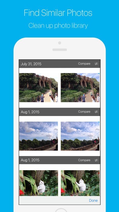 膨大なファイルの整理もアプリの比較ツールを使用すれば楽々行えます。比較ツールは、類似している写真を自動的に探し出してくれる機能なので似たような写真を整理してスッキリさせましょう。