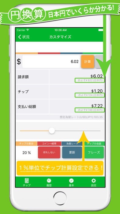 チップの額を計算することができるだけでなく、支払総額を知ることができる!