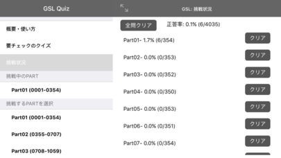 ・各パート或いは全てのパートの回答(挑戦)状況をクリアして繰り返し挑戦することができます。