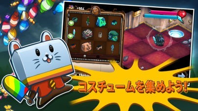 また、冒険の途中ではレインボーキャットやエイリアン、サイボーグなど様々なコスチュームや武器が手に入ります。