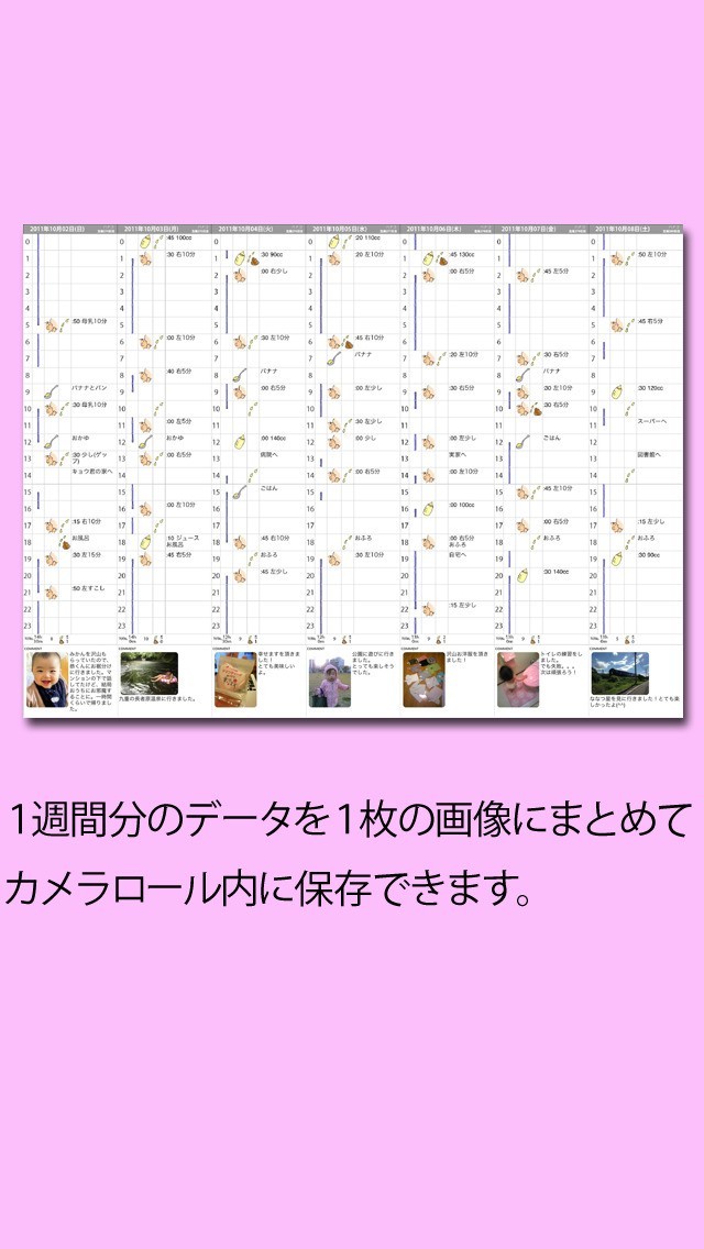 1週間分のデータを1枚の画像としてカメラロールに保存できます。