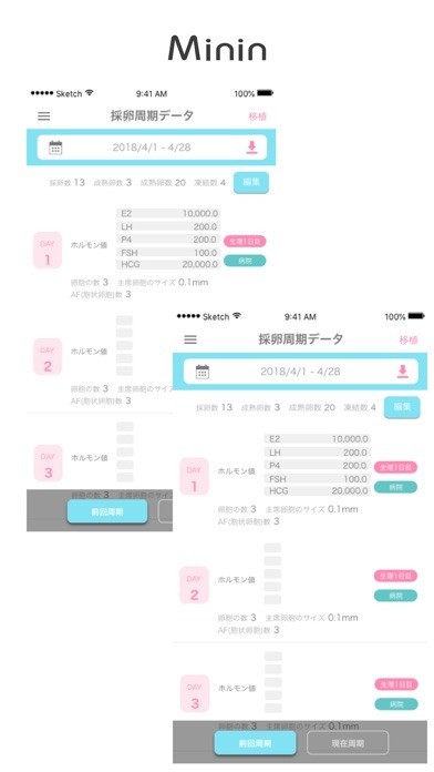App Storeより引用「ミニン(Minin)」は、”体外受精”のサポートに特化したアプリです。不妊治療経過をカンタンに管理するための、世界初のメニューが満載。心のケアはできないけれど、治療データの整理時間をカクジツに軽減します!