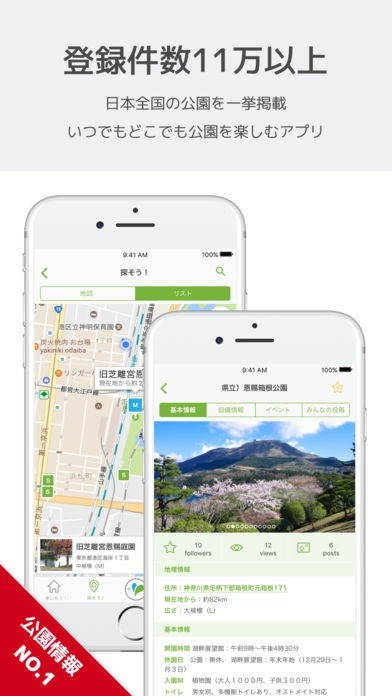 日本全国約115000か所の公園の情報や写真、コメントを確認することができる!