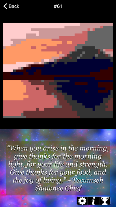 App Storeより引用Be thankful for all the little bits of joy in your life! PathPix Thanks includes 99 puzzles, small to large, Easy to Expert. Not the easiest, not the hardest -- 99 "just right" puzzles for the holidays and beyond. Be grateful every day of the year!