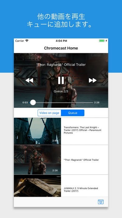 再生キューに自由に動画を加えることができますし再生する順番も変えれます。オリジナルのプレイリストを作って再生すれば、いつでも自宅のリビングが最高のエンタメ空間になります。