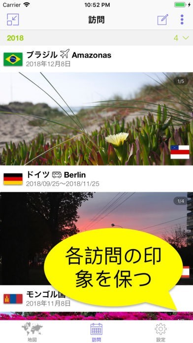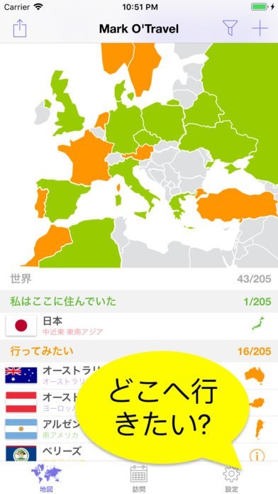 旅行した国を一つずつ記録して、友達に自慢!