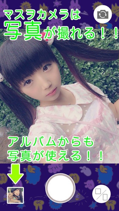 このツールはイソベマスオさんが作成した可愛くてちょっとだけ不謹慎なスタンプをカメラに這って撮影することができます。そのため自分を不謹慎に見せたいときに効果的です。