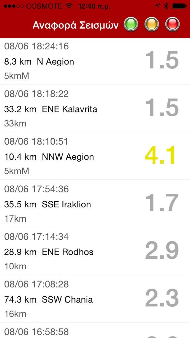 - Δυνατότητα προβολής μόνο των σεισμών που ξεπερνούν τα 4 ρίχτερ