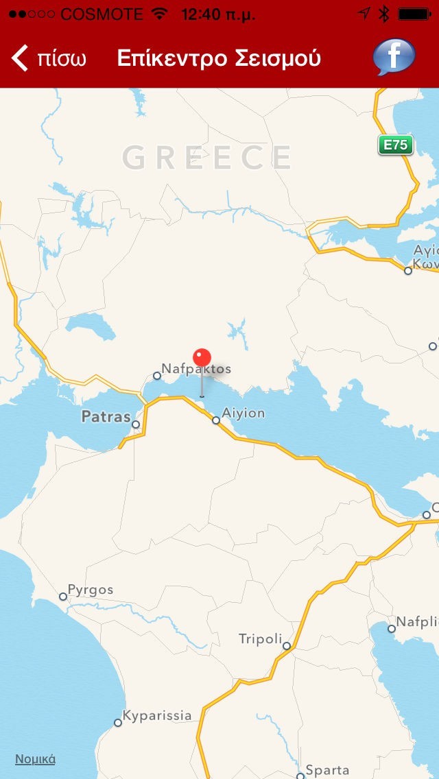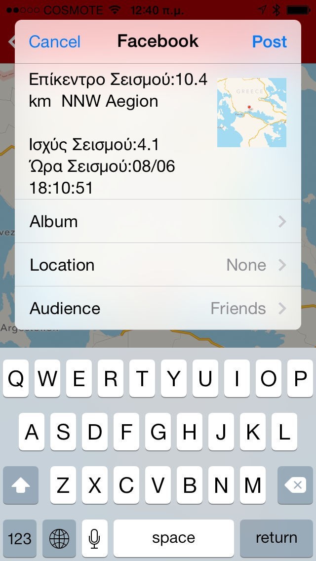 - Υποστήριξη Facebook για να κάνετε share στους φίλους σας τον σεισμό που σας ενδιαφέρει