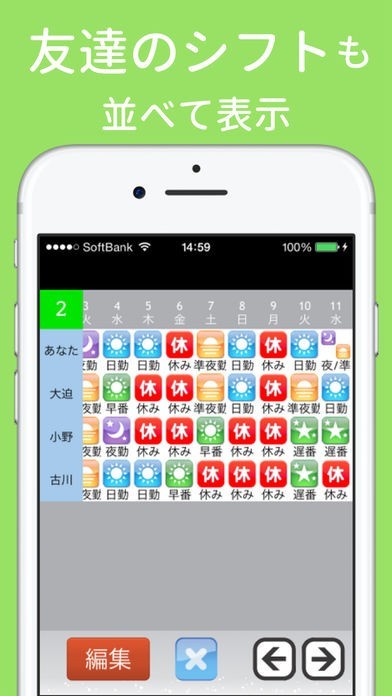 日勤や夜勤等の情報をアイコンで細かく管理出来るようになっています。さらに自動で給与計算を行ってくれるので、アルバイトの給料を素早くチェックしたい時にも役立つでしょう。