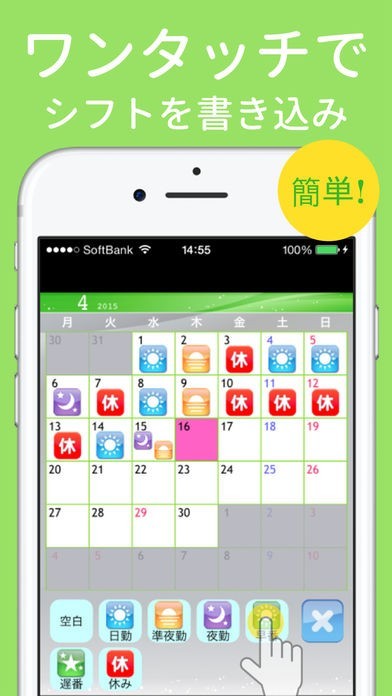 勤務日やシフトの時間帯を管理出来るスマホアプリ