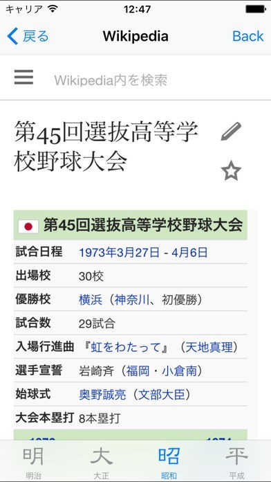 西暦を選択するとその年に関するウィキペディアのページに遷移できます。その年に何が起こったのかがすぐに分かるので、生年月日を調べるときだけではなく、現代史を調べるときにも便利な機能です。