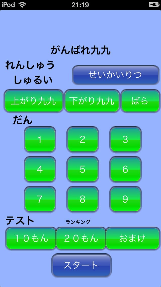 小学校に入って必ず覚えなければならない物の一つに「かけ算九九」があり親としては少しでも何か手助けしたいと思いますがこれは本人が頑張って暗記しなければいけなく、そんな時におすすめな『がんばれ九九』は掛け算の練習アプリで覚える時には「上がり九九」や「下がり九九」の順番に並んでいる問題を使って暗記し、覚えたのをランダムな出題で確認することができます。 過去に解いた問題から正解率が表示されるので苦手な段や問題がひと目でわかるようになっていて間違えた問題だけを出す機能もあるので復習にちょうどいいアプリになっています。