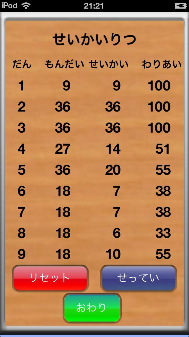掛け算を覚え始めた子供に苦手な問題の正解率も表示される
