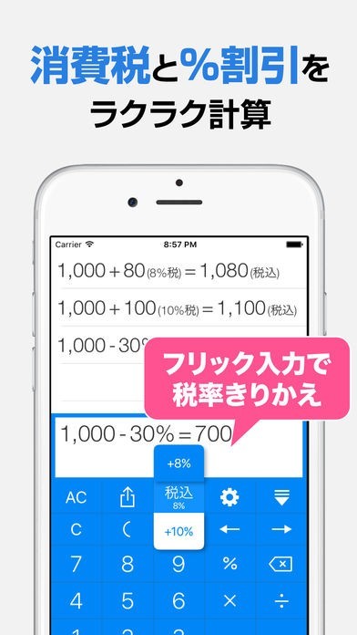 ジッピー電卓 - 使いやすい計算機!消費税と割引計算 無料版のスクリーンショット