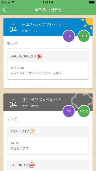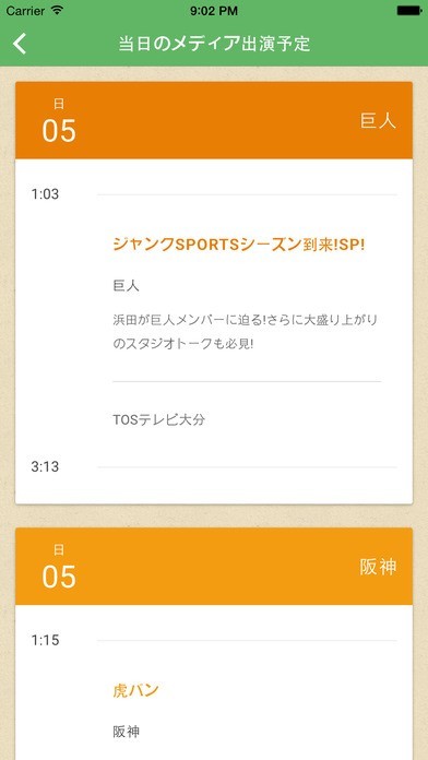 App Storeより引用プロ野球の中継予定や選手のメディア出演予定をサクっと確認!