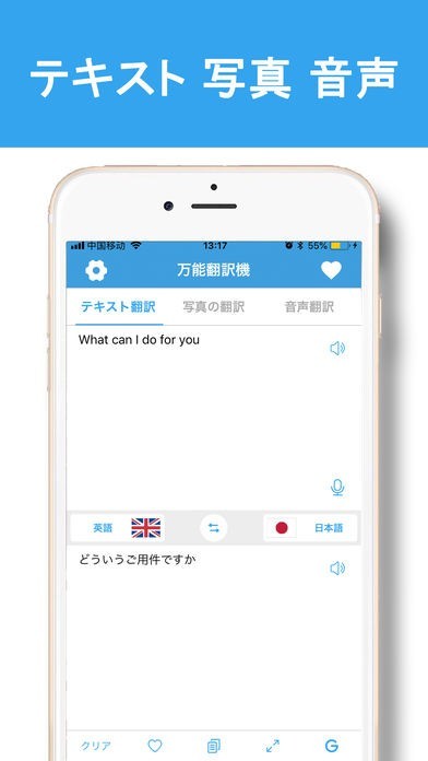 App Storeより引用「万能翻訳機」は三大主流の翻訳プラットフォームを統合して、写真を撮って翻訳して、知能音声認識、音声を文字翻訳の黒科学技術に変換する!最新の人工知能技術を駆使して、高精度な画像、音声認識モデルを使って、スマートな翻訳が簡単にできます!
