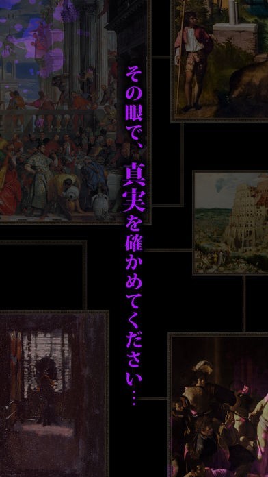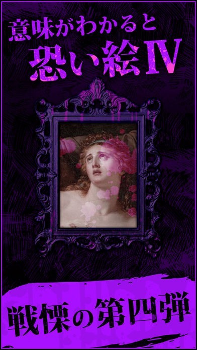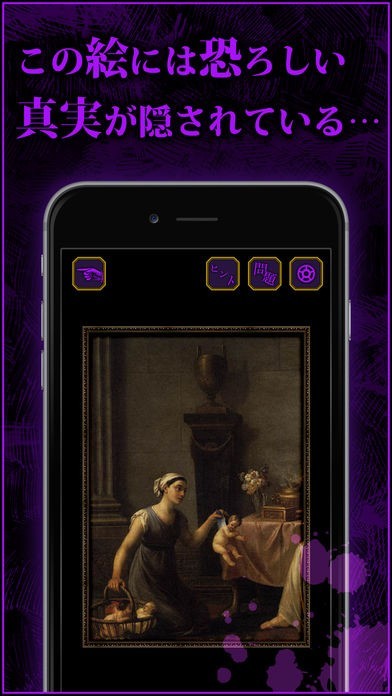 「恐い絵Ⅳ」は絵画の中から恐い場所を見つけるゲームです。 問題文に沿った恐い場所を見つけたらタップして回答します。問題の最初に絵画の描かれた時代背景を教えてくれるのでそれを手がかりにしてください。 ピンチアウトすることで細部まで観察できます。