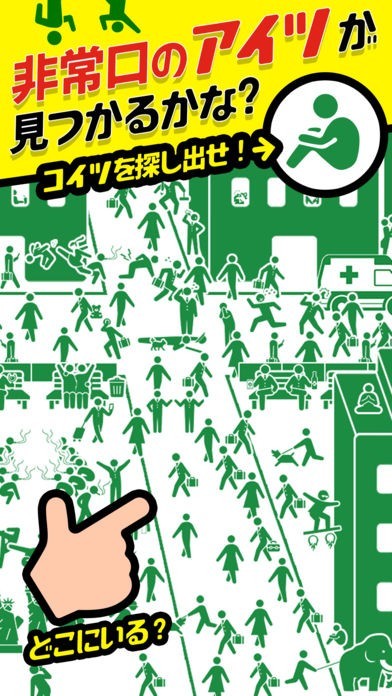非常口マークのピクトさんを探す単純なゲームですが様々なシチュエーショが笑えて面白いので、ついつい遊んでしまいます。時間制限がなく、分からない時はヒントを見ることも可能です。