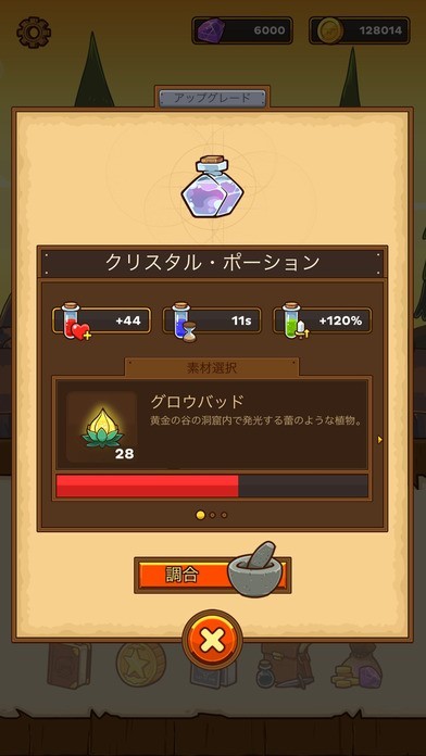 ポーションを調合して、回復力を高めたり、クールダウンを短くしたり、効果を高めたりなど、自分にとって最適な組み合わせを見つけ出そう。