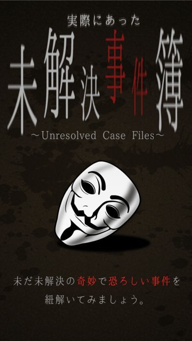家に一人で居て暇な時、小説の代わりに未解決事件を体験出来るこのアプリをオススメします。BGMが怪しい雰囲気を演出してくれて、まるで自分が事件の関係者になった様な感覚で楽しむ事が出来ます。また、実際に起こった事件が収録されているので、未解決事件に対して詳しくなり、友人達に教える事も出来ます。自分で選択して進めていくので、事件の内容がとても記憶に残ります。
