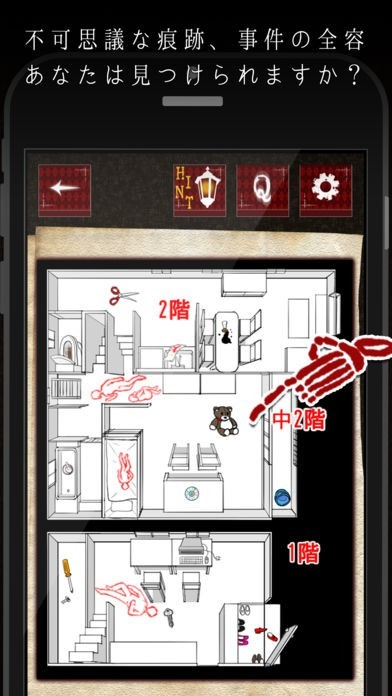 進めていくのに必要な操作は、簡単なタップ操作のみです。未解決事件についての質問がされた後、事件現場再現イラストから質問に合う部分を選択して進めていくのですが、間違えても何度でもチャレンジする事が出来ます。難しい事は一切なく、どなたでも楽しむ事が出来ます。またどうしても分からなければヒントを貰う事も出来るので、気軽にプレイ出来ます。