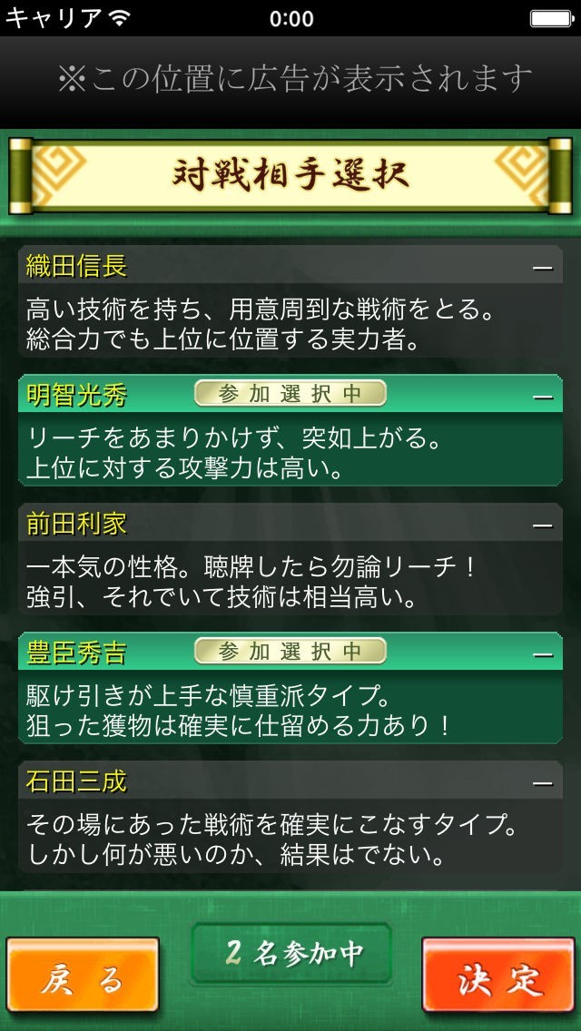 ※「四人麻雀」「四人麻雀LITE」はiOS9.0以降未対応です。