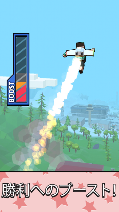 合図に合わせてタップしてジャンプ、空高く舞い上がろう。ジェットパックの燃料を使い切って長距離を移動しよう。