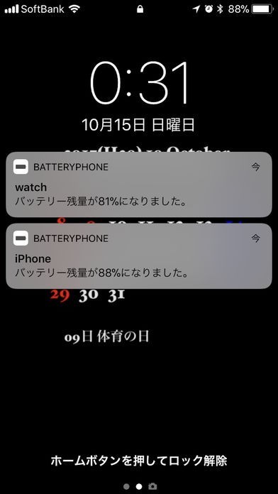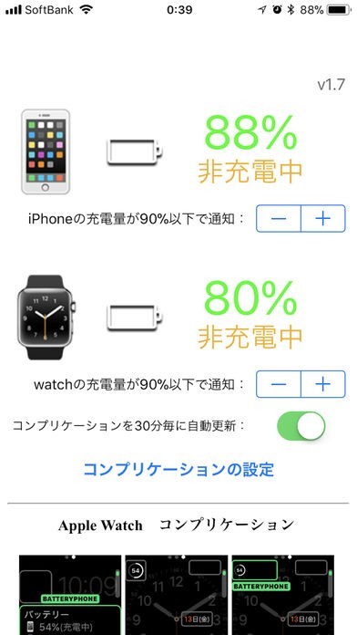 iPhoneやwatchの充電量が指定の%以下になったら通知でお知らせします。
