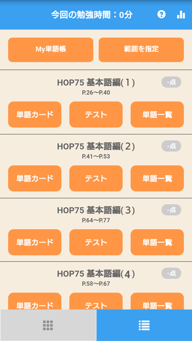 「単語カード」や「テスト」で表示・出題する単語の範囲を、