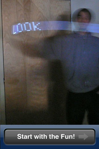 このアプリは、スマホをゆっくりとスイングした軌道上に文字を表示する「エアーライト」で遊べます。残像を利用するため特に写真での映りがよく、SNSなどでシェアしたくなる写真が撮れます。