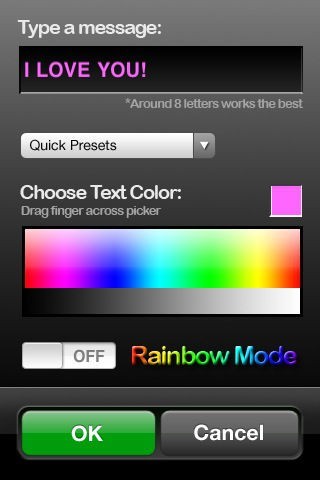 「Light Writer」で表示できるメッセージには2種類あり、"Hi Mom"のようなデフォルトの定型文の他、自分で設定したメッセージを表示することもできます。