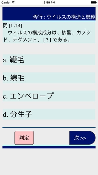 看護師になるためには必ず学習する必要がある微生物学を勉強するために、微生物学のみを特化した学習アプリです。反復練習を繰り返し、知識を定着させて試験突破を目指すことができます。