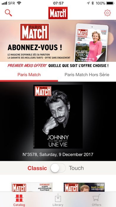 フランスの老舗週刊誌PARIS MATCHが毎週木曜日に配信され、現地の雑誌を日本にいながら携帯やタブレットで閲覧することができるアプリです。デジタル版ならではのズームアップやアーカイブ機能などで雑誌を読むより読みやすいです。