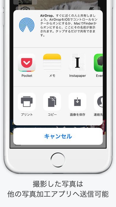 メールやSNSに送ることができるので、家族や友人と共有可能