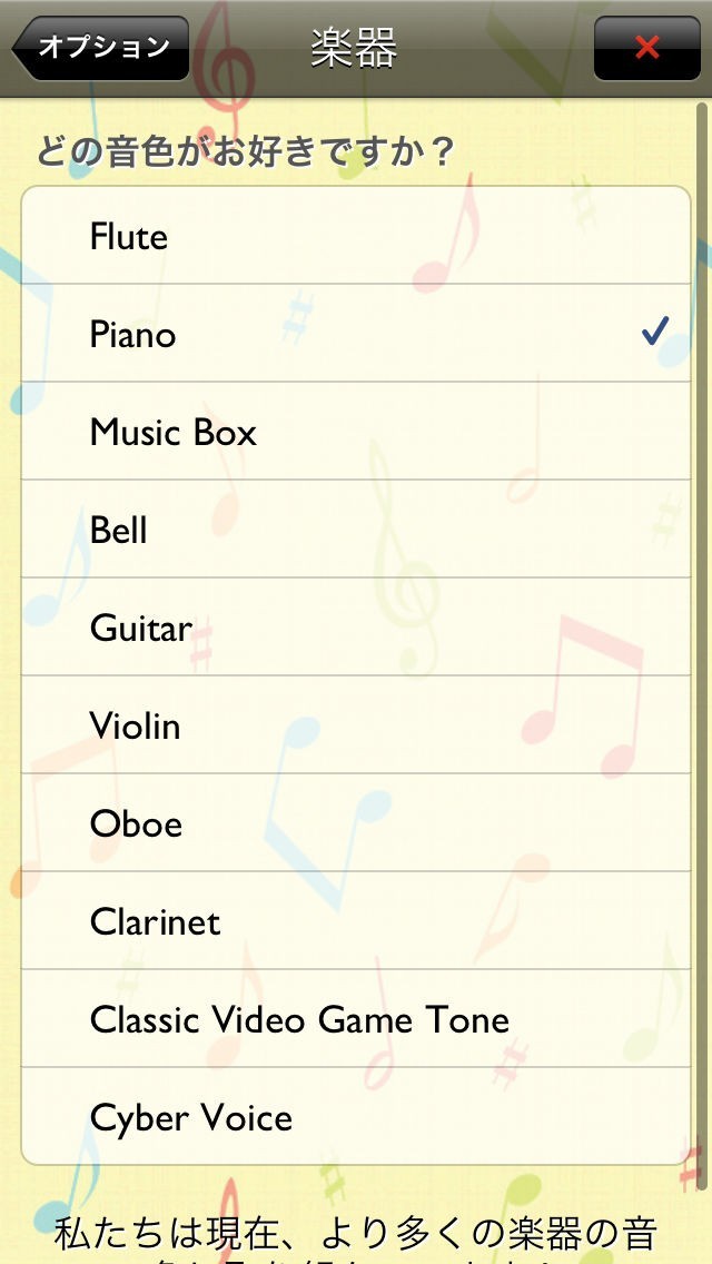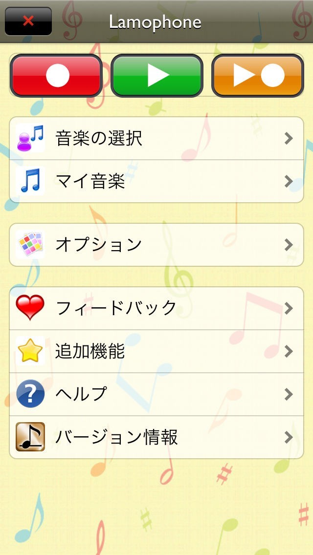 「Lamophone」を使うことによって、いろいろな楽器をスマートフォンに再現するのではなく、スマートフォンの特徴を最大限に活かした楽器を演奏することが可能になります。 よって、新たな音楽体験をしたいというような方に向いています。 用意されている音色の中から選択することができ、その中には、「クラリネット」、「オーボエ」などといったものもあります。 また、画面を見ずとも直感で演奏することができ、3オクターブに対応していることから複雑な演奏まですることができます。 そして、できあがったものは録音して、TwitterやFacebookに「共有」することで、友達に聞いてもらったり、演奏者同士で意見交換することも可能です。追加機能を購入することによって、便利な「Music Lover Specials」などを使えるようになります。