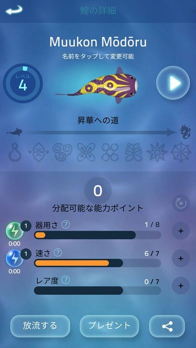 育成を続ける事で鯉が龍に進化する楽しみがある