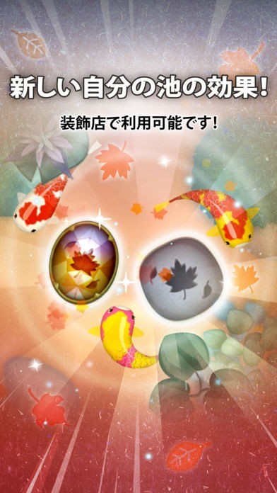 鯉を育てて成長させるのが目的のゲームですがそれだけでなく鯉が大きくなると池を拡張できるようになっているので鯉の変化だけでなく鯉が泳いでいる池の変化も一緒に楽しめるという良さがあります。
