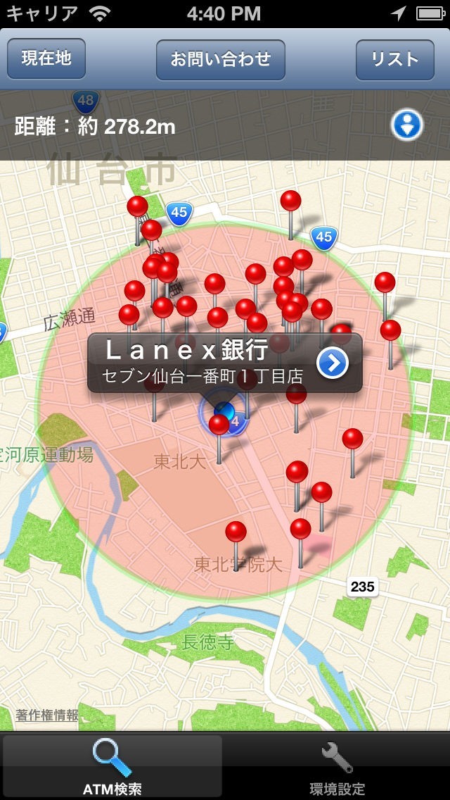 表示対象の金融機関で、現在営業しているATMのみを地図上に表示します。