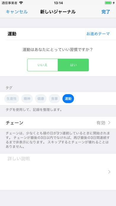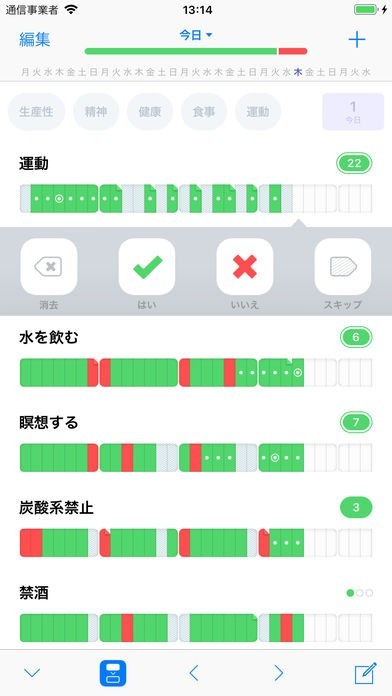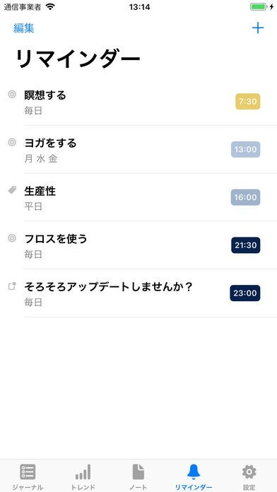 あなたが計画したことや習慣付けたいことを曜日ごとに設定します。リマインダーを設定することで計画的に効率よく日々の生活を送れます。薬を飲まないといけないなど、やらなければならないことも登録しておけば忘れることはありません。また、実際に行った時間をグラフで視覚的に確認することができます。これにより習慣付けが上手くいっているのか、評価することができます。ノートがあるので予定の詳細を記入したり、上手くいかなかった場合の理由なども書き込むことができます。全体の操作としては簡単でシンプルな作りです。このアプリは基本的には無料ですが、課金することによってpremiumにできます。premiumではリマインダーを複数設定できるなどの機能が利用できます。なお、このアプリはiOS対応なのでAndroidではご利用できません。