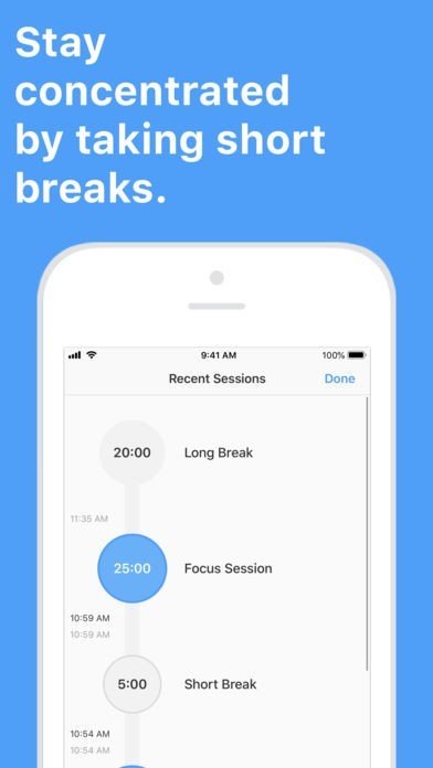 25分間の集中と短い休憩時間をセットにしたタイマーで、集中力を切らすことなく仕事を効率よく進めることができます。エネルギーを最大限に発揮することで、達成感を味わえます。
