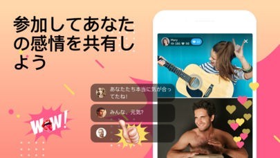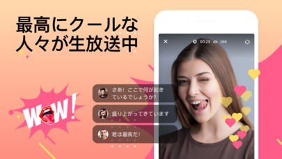 誰でも簡単に配信者または応援者になれるライブ配信アプリです。気に入った配信やお気に入りの配信者の配信には"いいね"や"プレゼント"を送って応援することができます。