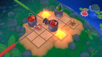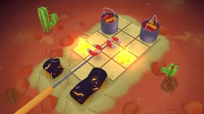 マシュマロやお肉などの食べ物を、キャンプファイヤーを使ってこんがりと焼いていきます。食べ物が焦げてしまわないように頭を使いながら、楽しんでパズルを進められます。