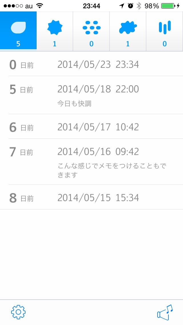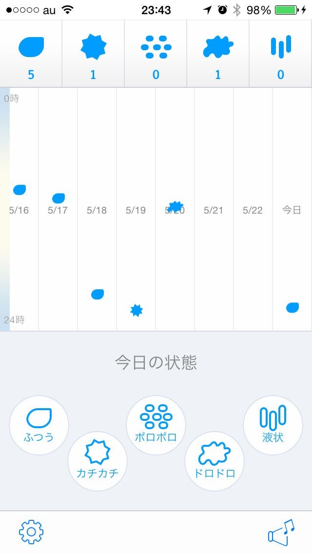 お通じの状態を5つの選択肢の中から選ぶだけで簡単に記録できる!