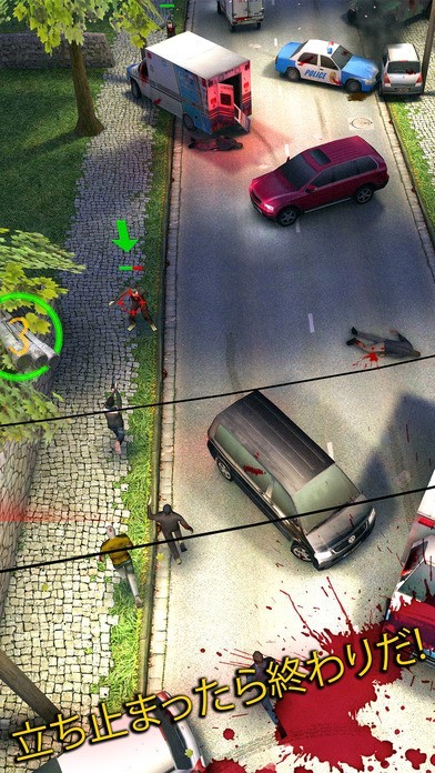 「RunningDead」は、襲いかかってくるゾンビをたおしながら逃げまわるるゲームです。逃げながらコインを貯めれば、武器や操作キャラを追加できる。地雷やチェーンソーといった変わった武器も多く、使い方や威力もそれぞれ違います。また、農村と都市部といった2種類のステージから自由に選ぶことができ、設置されている障害物や建物も大きく違うのも魅力的です。通れる道は毎回違うので、最適なルートを探しながらより遠くまで逃げましょう。