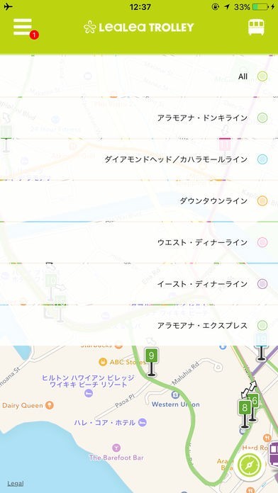 ハワイやグアムへの旅行を予定されている方!旅行中は現地の交通機関を使いたいと思っている方にとってうってつけのアプリが「LeaLeaトロリー H.I.S.」です。このアプリでは、路線図がラインごとに色分けられて表示されているので、トロリーバスでの移動の際にどの路線を選択すればよいかがわかります。また、運行状況を確認することができるので、旅を計画通り進められるかが一目でわかります。トロリーバスを使えば現地の生活感のある下町を移動することができたり、観光用に整備された街並みを楽しむこともできるので、このアプリを使うことでグアムやハワイを十二分に楽しめます。