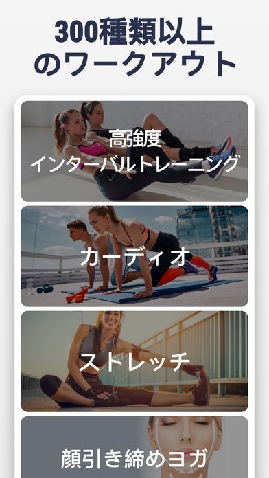 300種類以上の自重ワークアウトで脚、ヒップ、お腹、腕、ウエスト、胸など、様々な体の部位をトレーニングすることができます。ワークアウトはすべてプロのフィットネスコーチによってデザインされており、理想の体型を手に入れ、効果的に減量を助けることが証明されています。